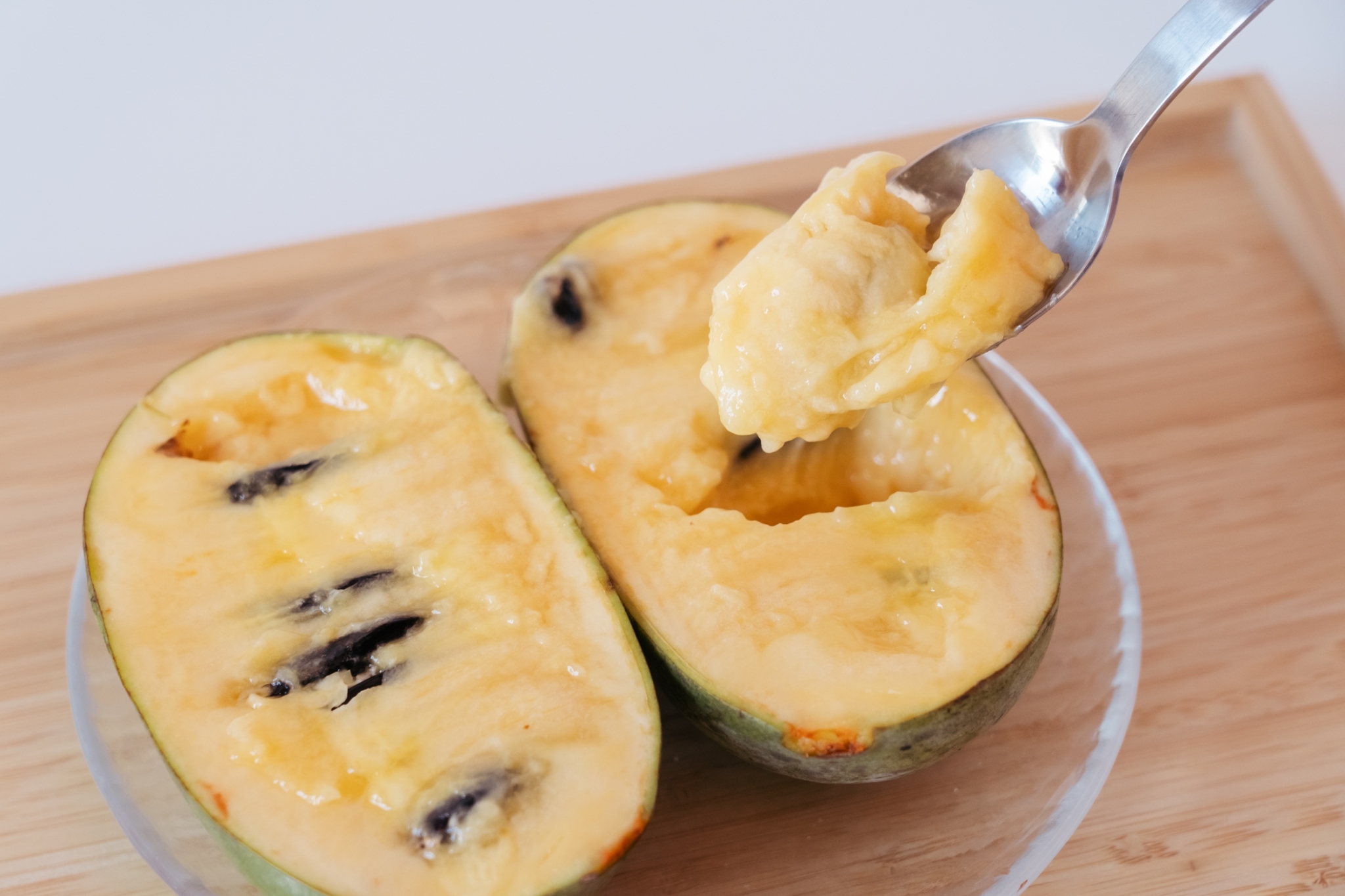 果肉はねっとりと濃厚で、マンゴー・バナナ・柿を合わせたような独特の香りと甘さが魅力です。